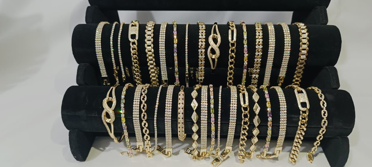 Collection de bijoux dorés aux finitions soignées, parfaite pour sublimer vos tenues. Colliers fins, bracelets délicats et pièces ornées de cristaux scintillants. Ces créations Trésors By Ninel allient légèreté et sophistication pour un port confortable tout au long de la journée. Pièces vendues séparément.